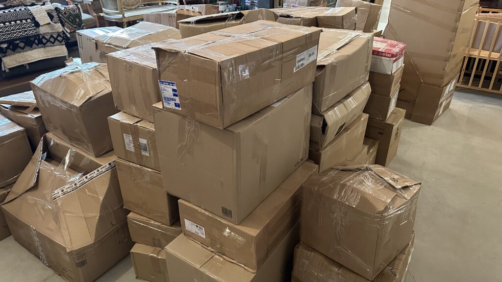 倉庫も店内もパンパンでこれから待ち構えているクリーニングとウェブショップ用の