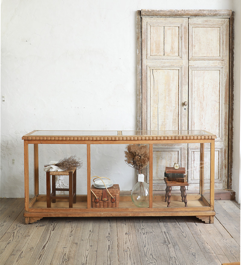 棚板がないぶん、自由にディスプレイできショップのショーケースにおすすめです