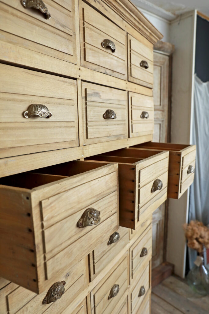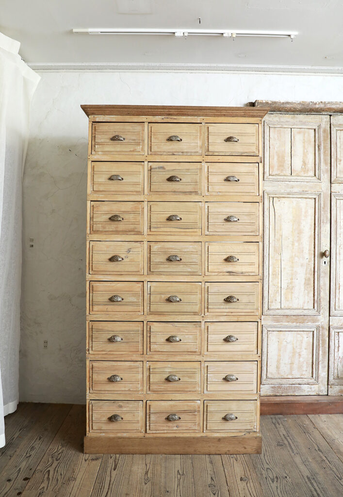 2mを超える高さに引き出しは32杯も付いており、申し分のない収納力です。