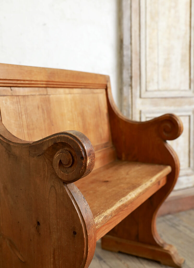 小ぶりなサイズにフランスらしいクラシカルなデザインが可愛らしいウッドベンチ