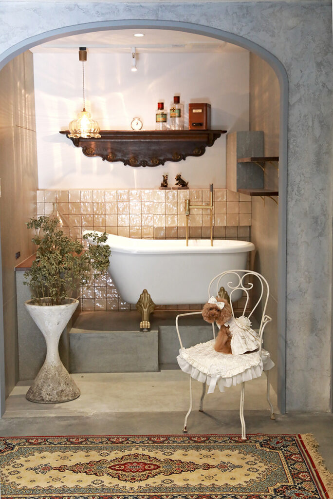 シャンプーを流すシャワールームにはアンティーク好きなら一度は憧れる猫脚のバスタブを◎